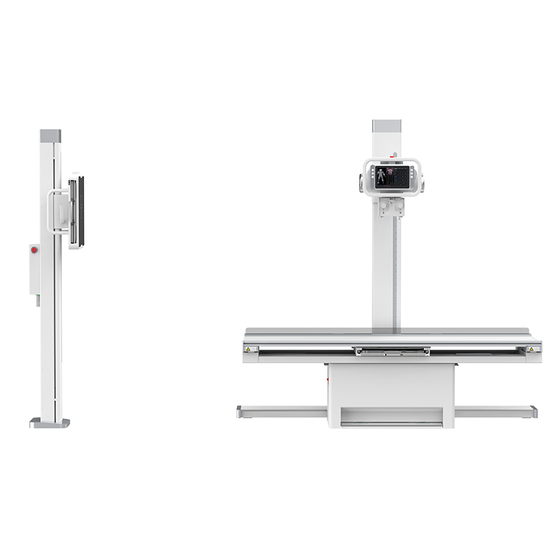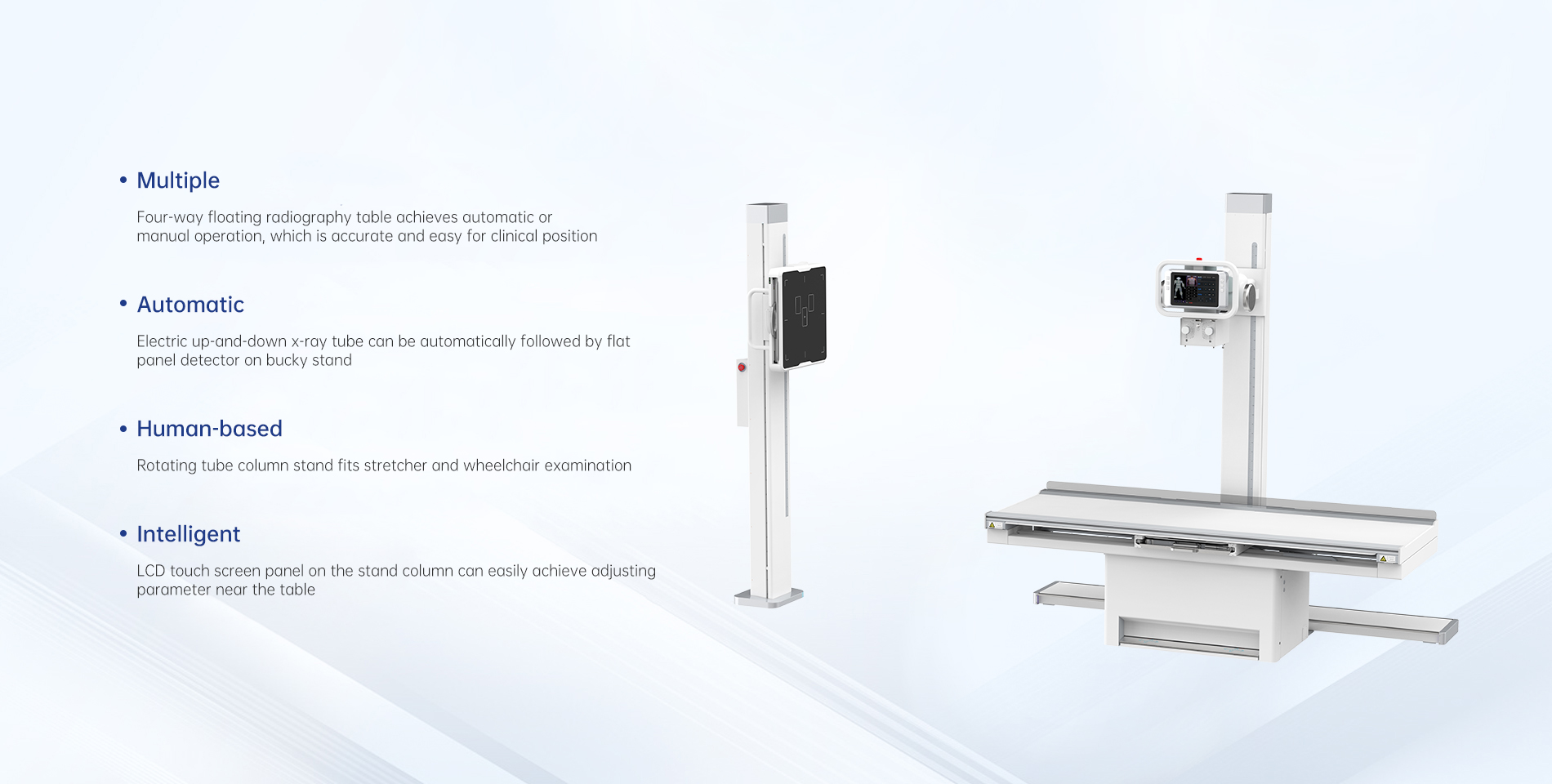 Tubo de rayos X con desplazamiento vertical eléctrico que se sincroniza automáticamente con el detector de panel plano en el soporte Bucky.